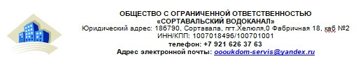 ВНИМАНИЕ!!! Уведомляем , что с 18.11.2024 ООО "ДомСтройСервис" переименовано в ООО "Сортавальский водоканал", реквизиты для оплаты кроме названия организации НЕ ИЗМЕНИЛИСЬ!